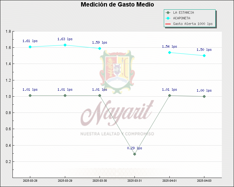 RIO ACAPONETA GASTO ALERTA 1000 m3/s |