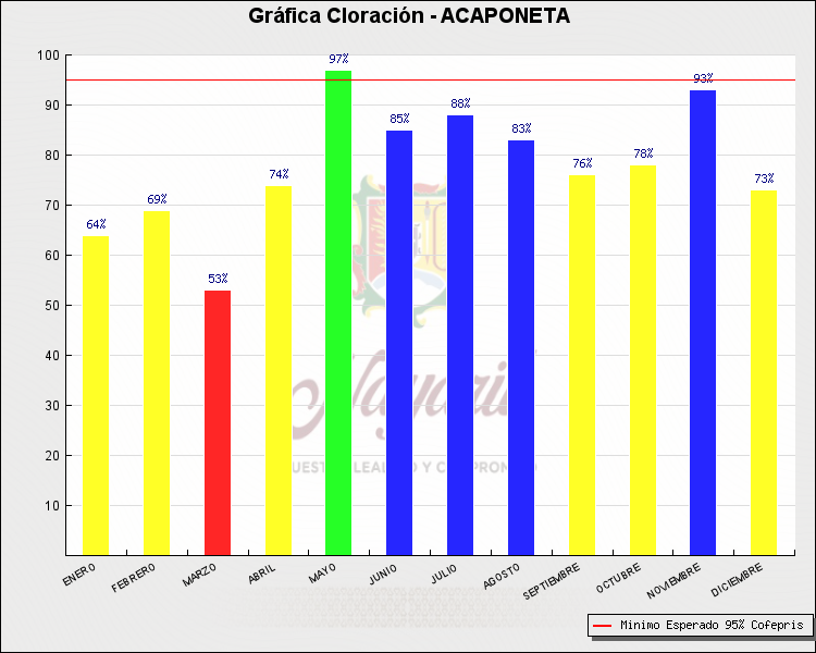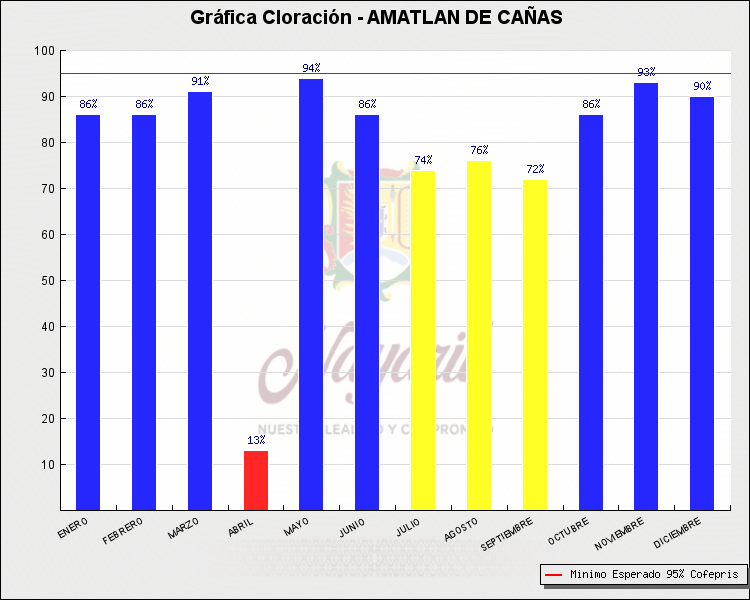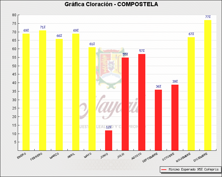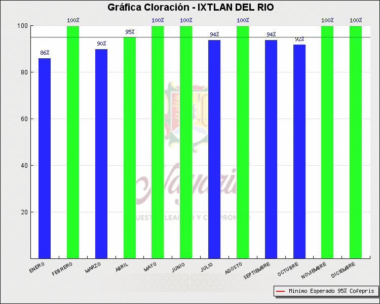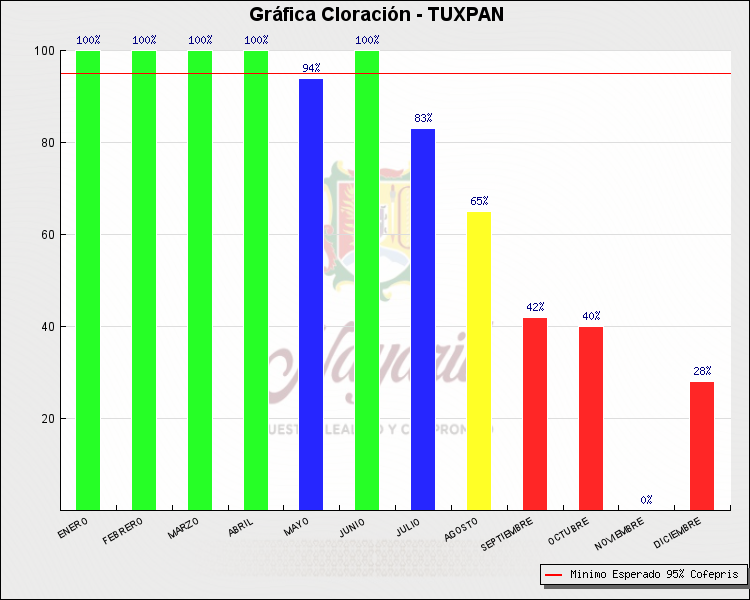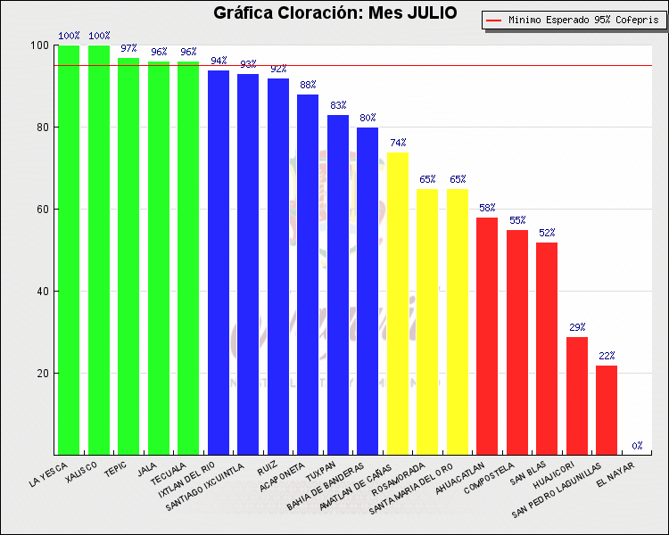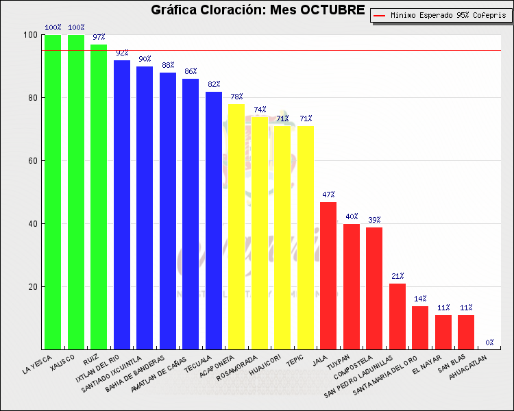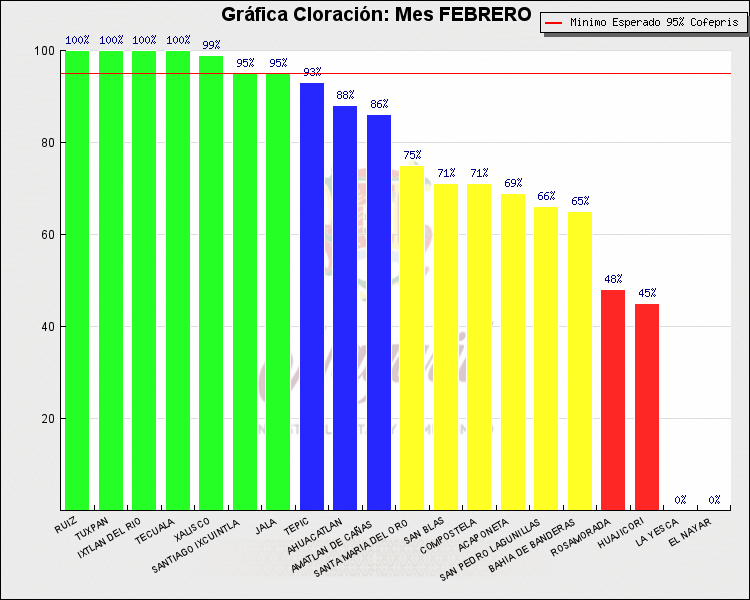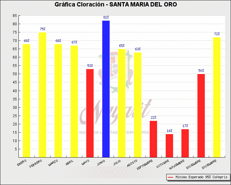 * Nota: La actualización de los Niveles de Cloración del Mes, se realiza a los 15 días del mes siguiente, esto debido a las pruebas de laboratorio que el Sector Salud realiza. Los Municipios que aparece su valor en 0%, es por falta de monitoreo en ese mes y no indica que la cloración no se haya realizado.