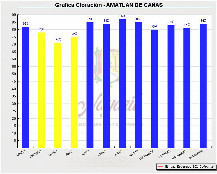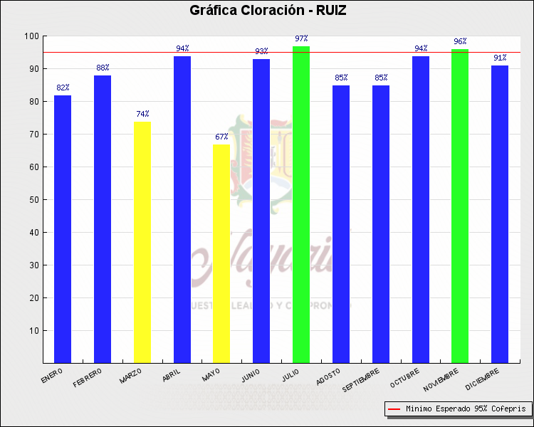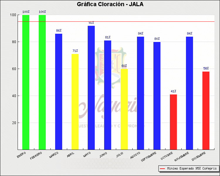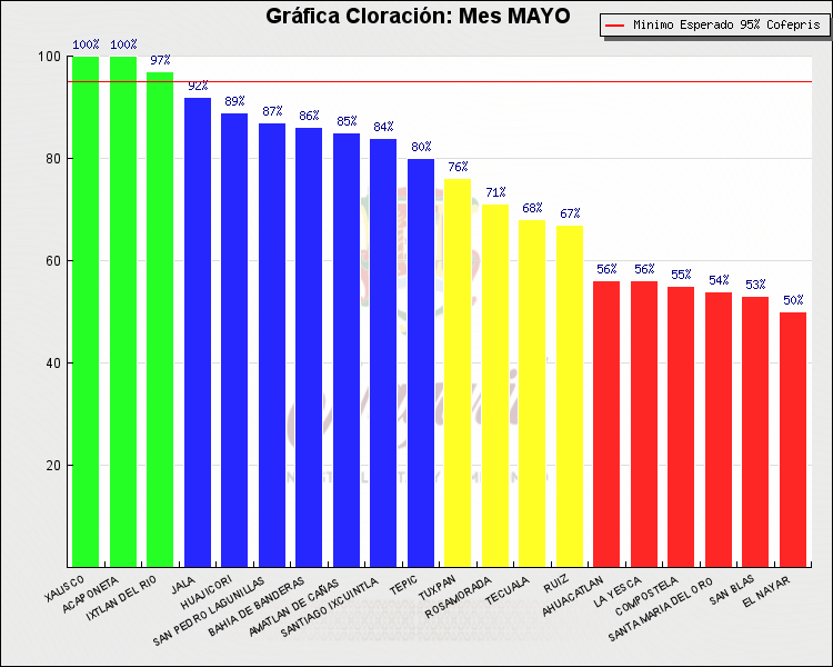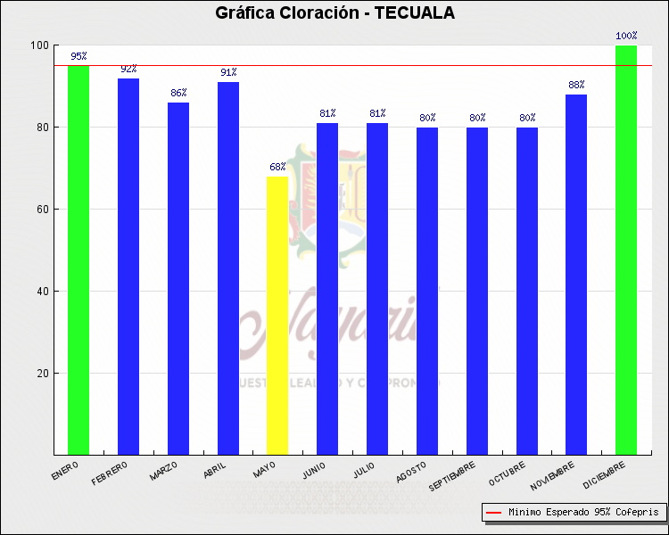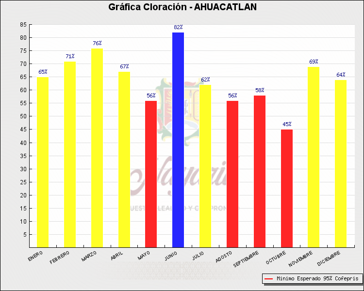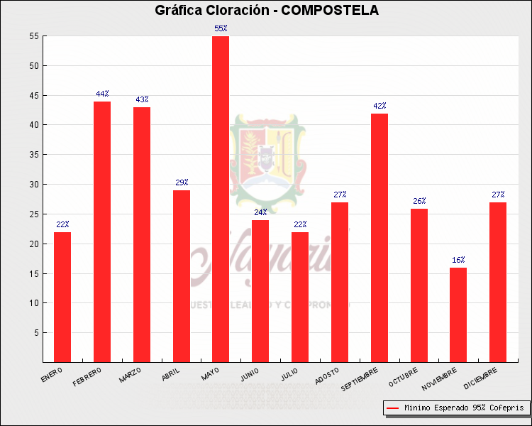* Nota: La actualización de los Niveles de Cloración del Mes, se realiza a los 15 días del mes siguiente, esto debido a las pruebas de laboratorio que el Sector Salud realiza. Los Municipios que aparece su valor en 0%, es por falta de monitoreo en ese mes y no indica que la cloración no se haya realizado.