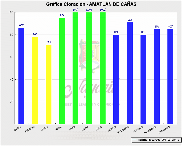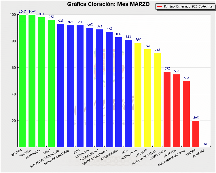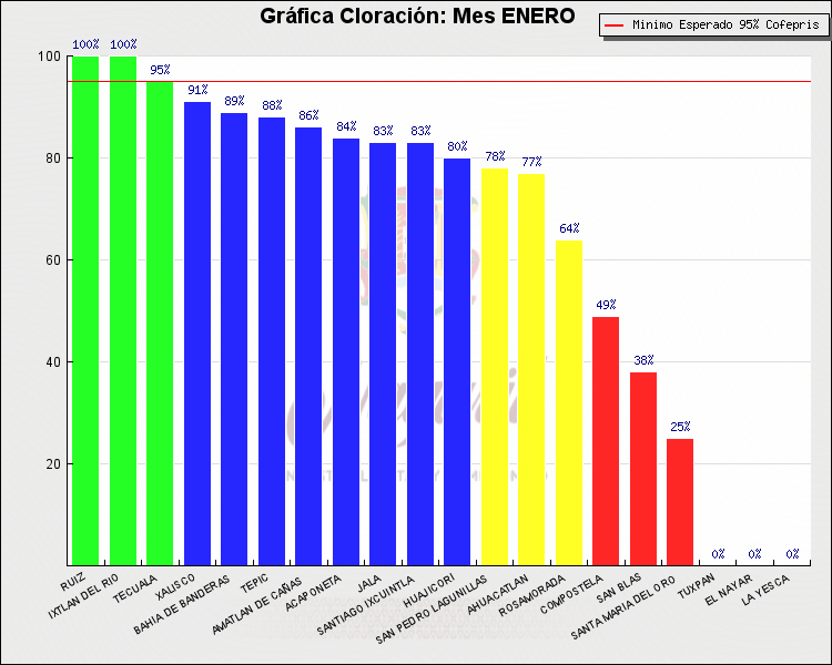 * Nota: La actualización de los Niveles de Cloración del Mes, se realiza a los 15 días del mes siguiente, esto debido a las pruebas de laboratorio que el Sector Salud realiza. Los Municipios que aparece su valor en 0%, es por falta de monitoreo en ese mes y no indica que la cloración no se haya realizado.