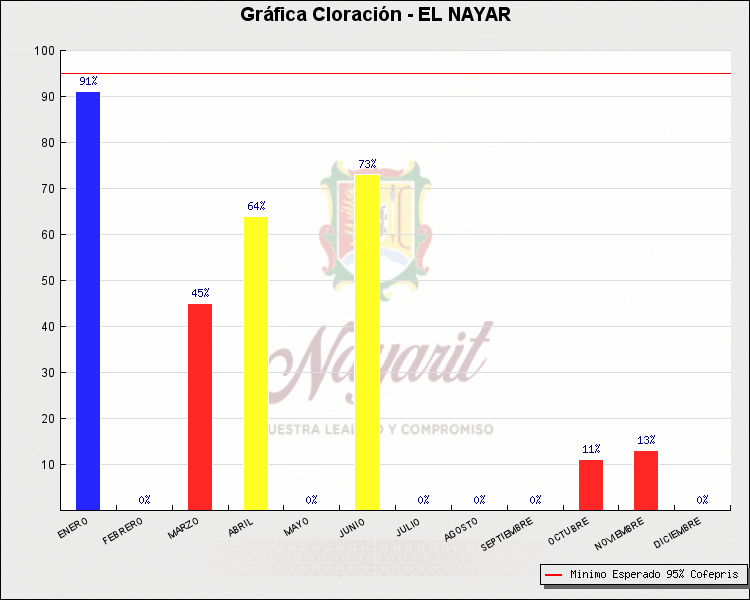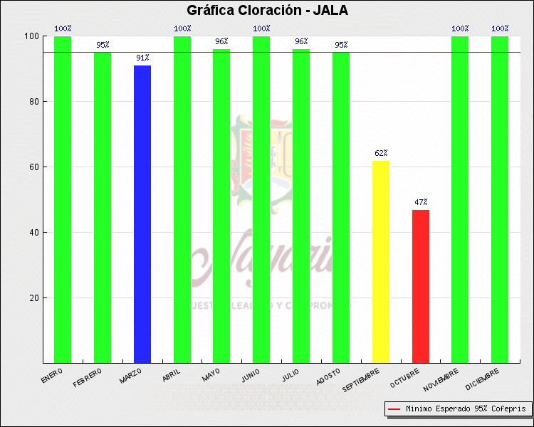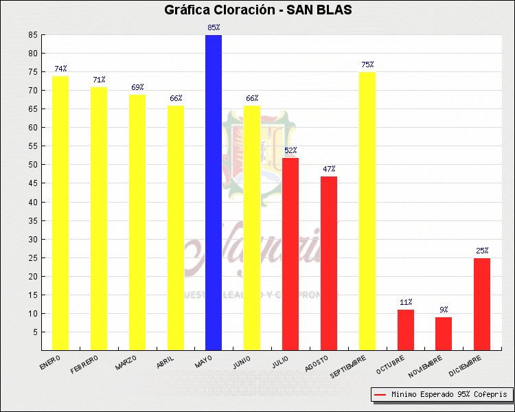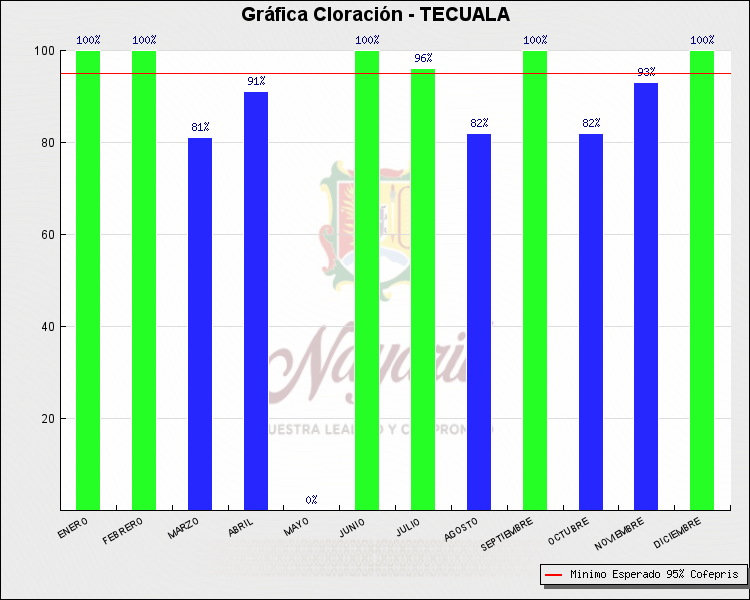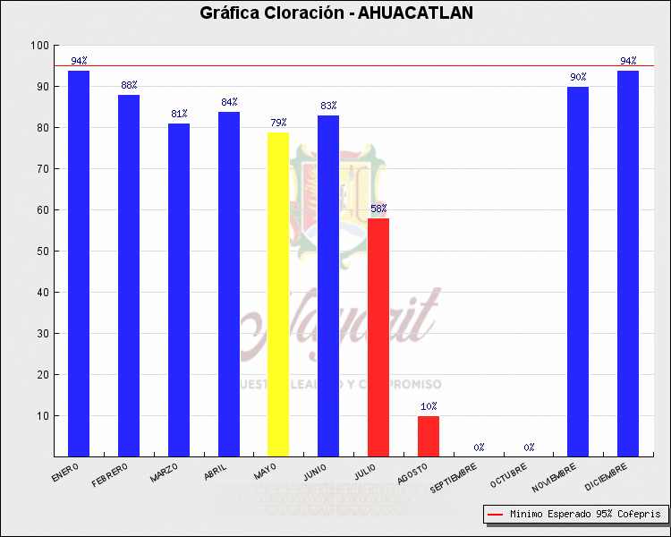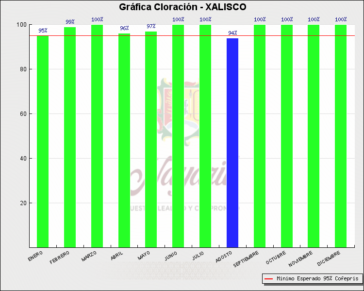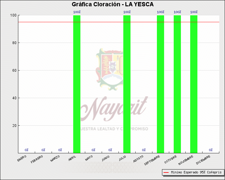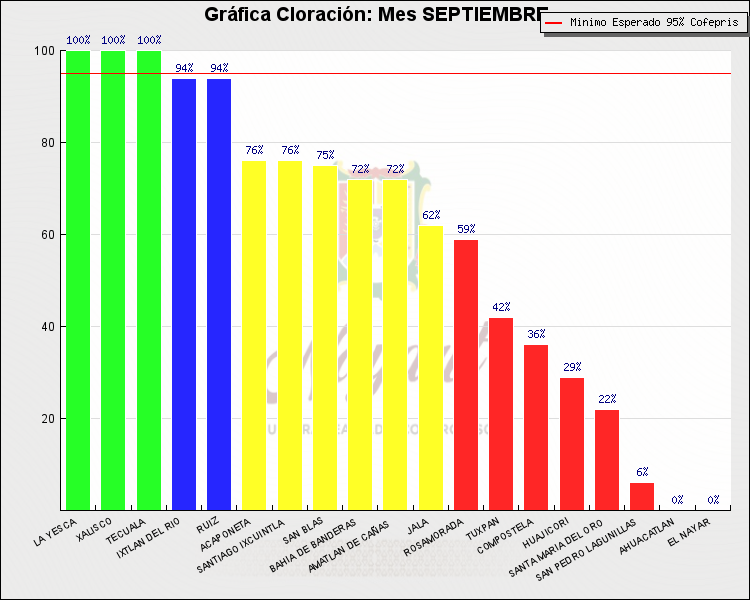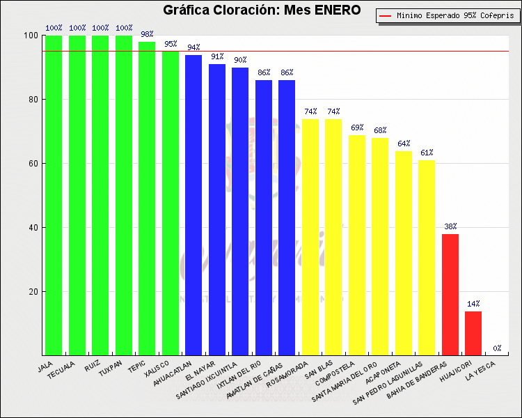 * Nota: La actualización de los Niveles de Cloración del Mes, se realiza a los 15 días del mes siguiente, esto debido a las pruebas de laboratorio que el Sector Salud realiza. Los Municipios que aparece su valor en 0%, es por falta de monitoreo en ese mes y no indica que la cloración no se haya realizado.