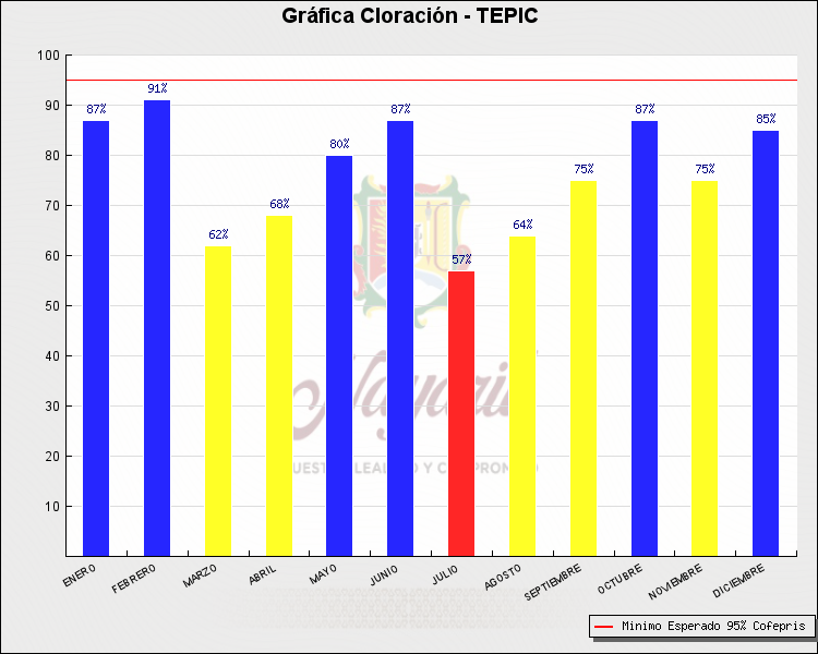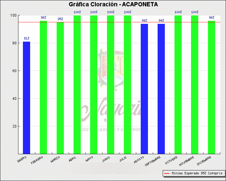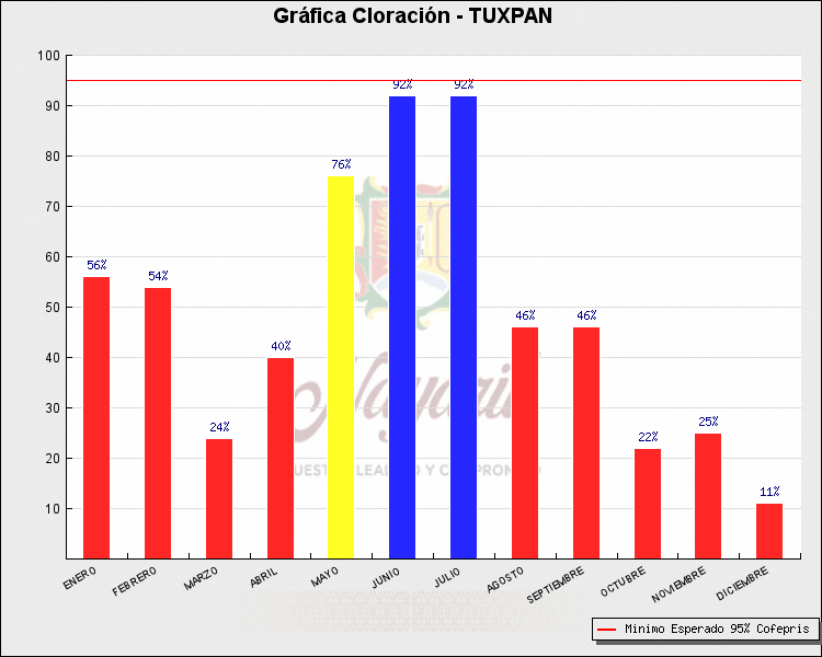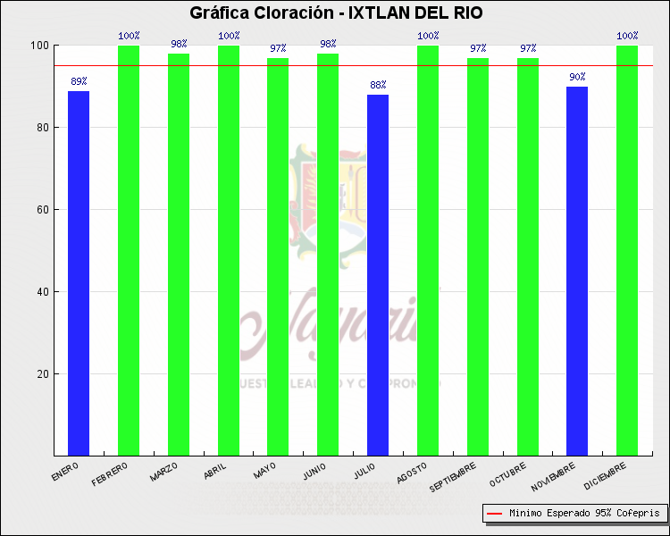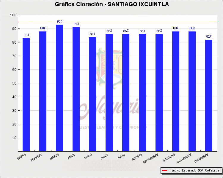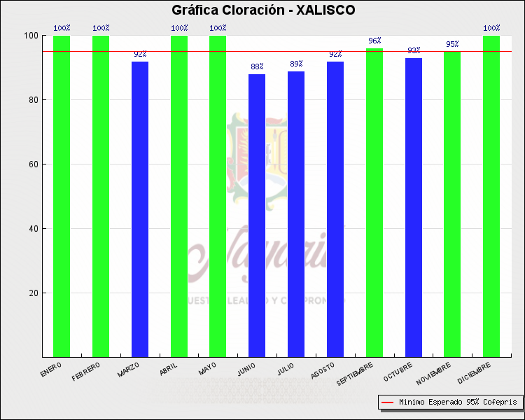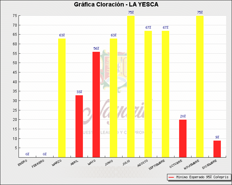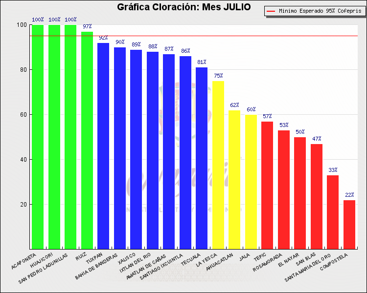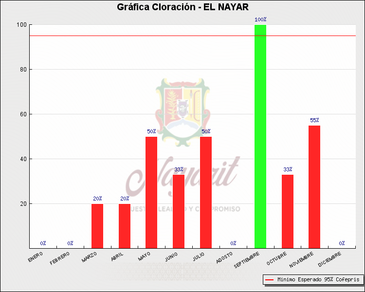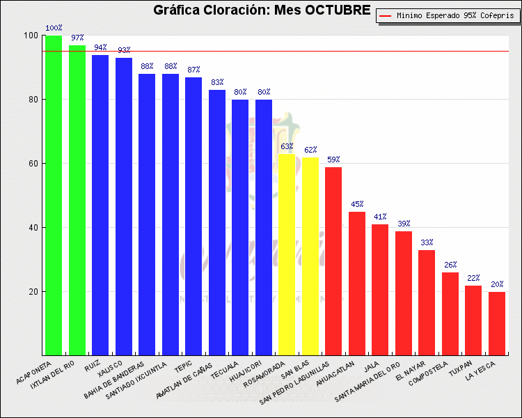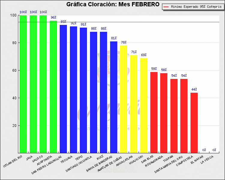 * Nota: La actualización de los Niveles de Cloración del Mes, se realiza a los 15 días del mes siguiente, esto debido a las pruebas de laboratorio que el Sector Salud realiza. Los Municipios que aparece su valor en 0%, es por falta de monitoreo en ese mes y no indica que la cloración no se haya realizado.