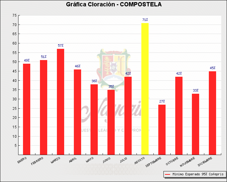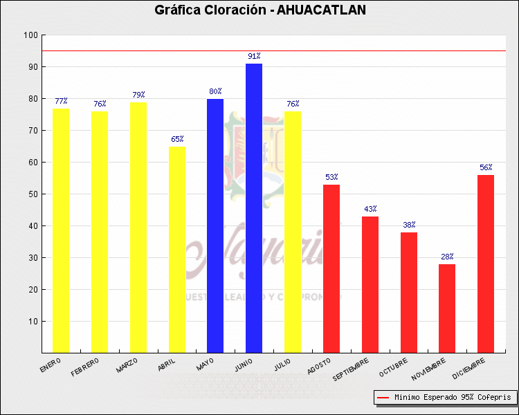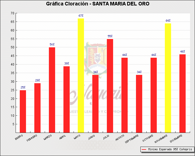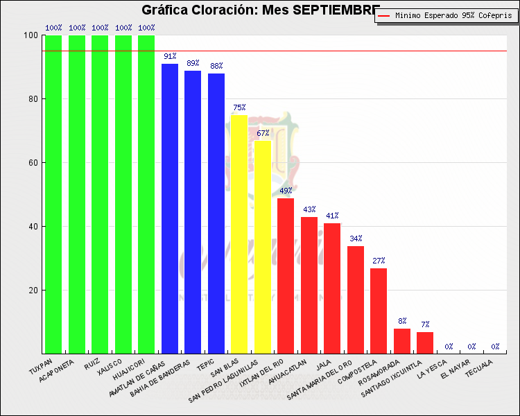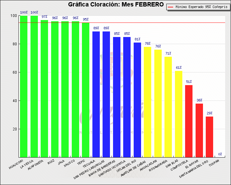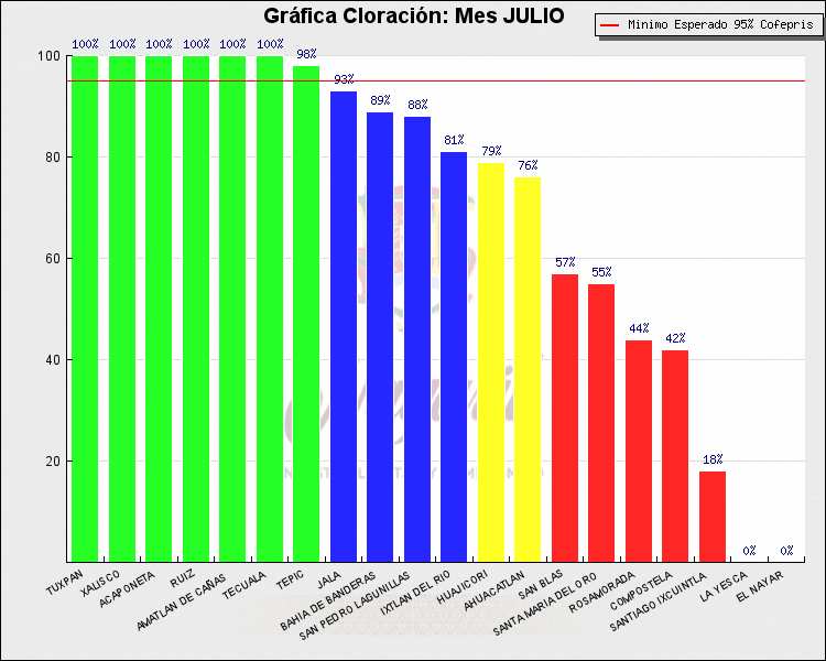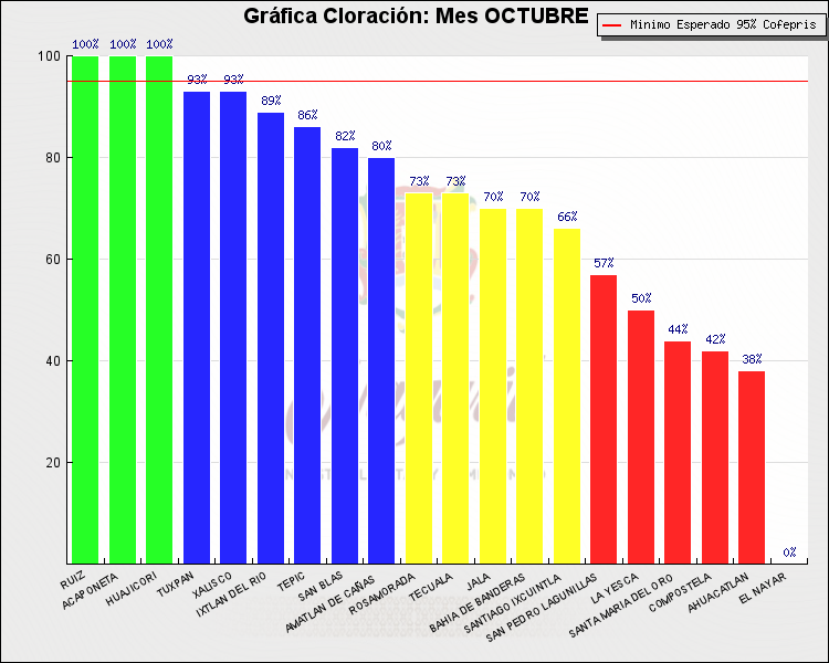 * Nota: La actualización de los Niveles de Cloración del Mes, se realiza a los 15 días del mes siguiente, esto debido a las pruebas de laboratorio que el Sector Salud realiza. Los Municipios que aparece su valor en 0%, es por falta de monitoreo en ese mes y no indica que la cloración no se haya realizado.