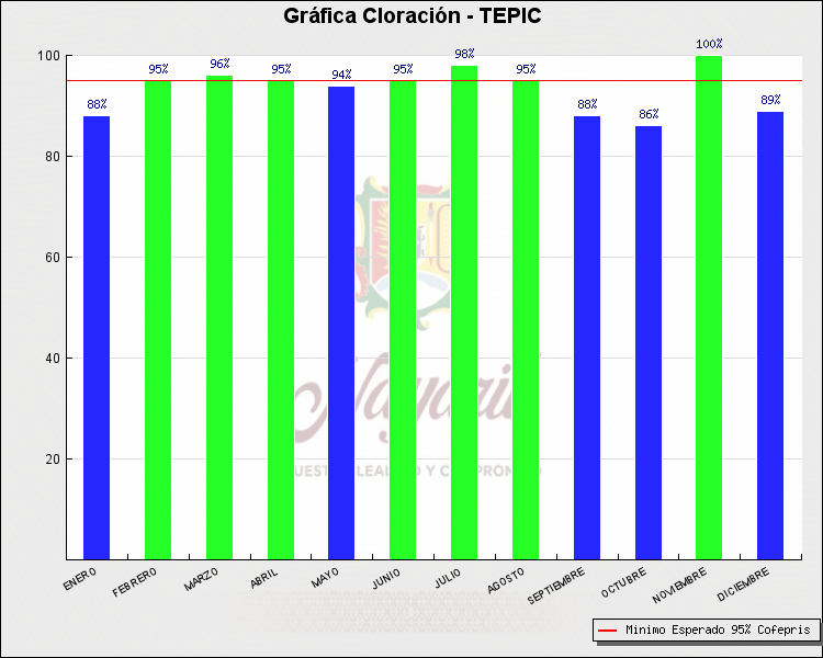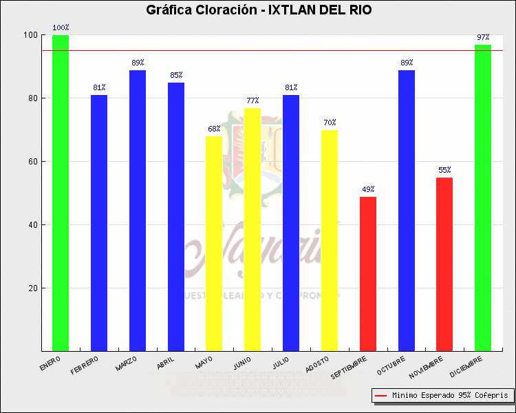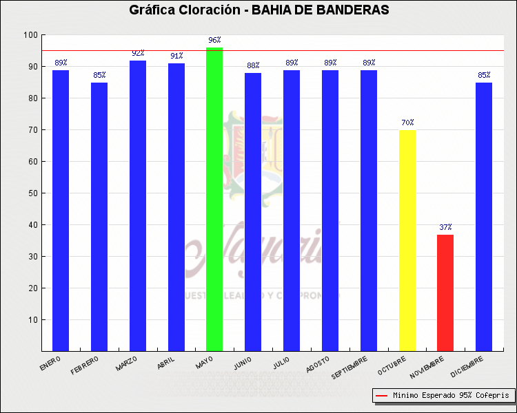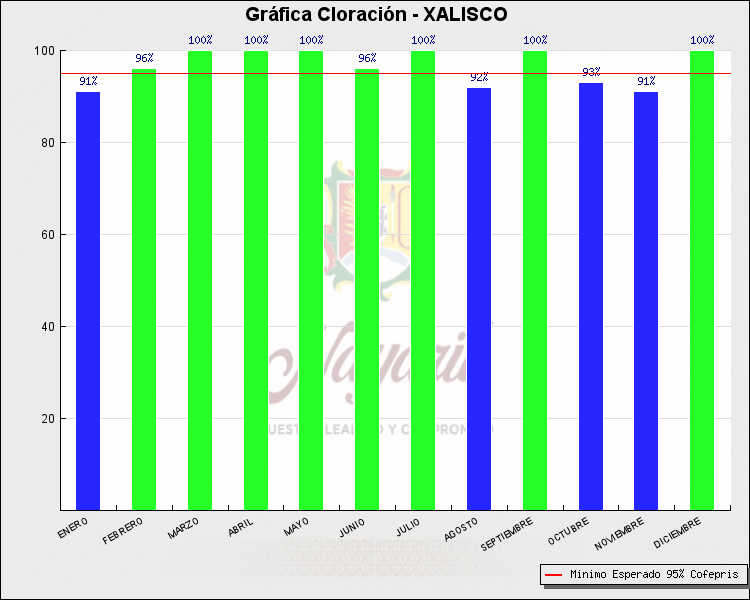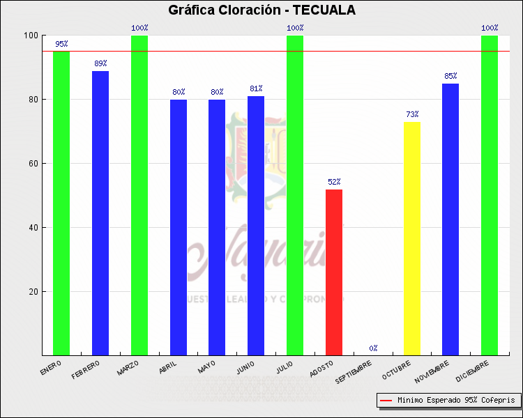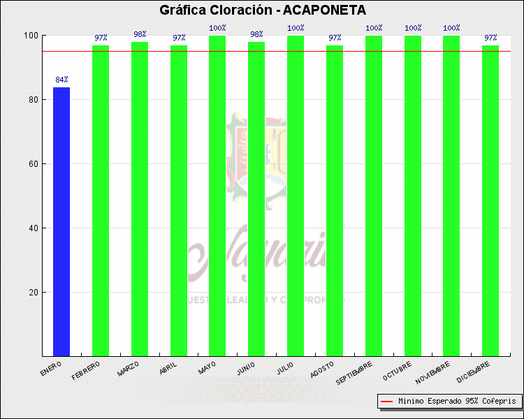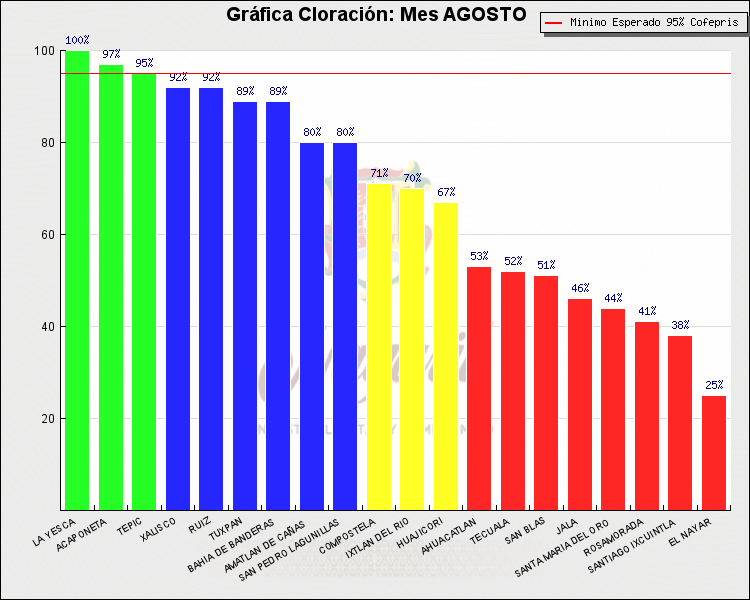 * Nota: La actualización de los Niveles de Cloración del Mes, se realiza a los 15 días del mes siguiente, esto debido a las pruebas de laboratorio que el Sector Salud realiza. Los Municipios que aparece su valor en 0%, es por falta de monitoreo en ese mes y no indica que la cloración no se haya realizado.